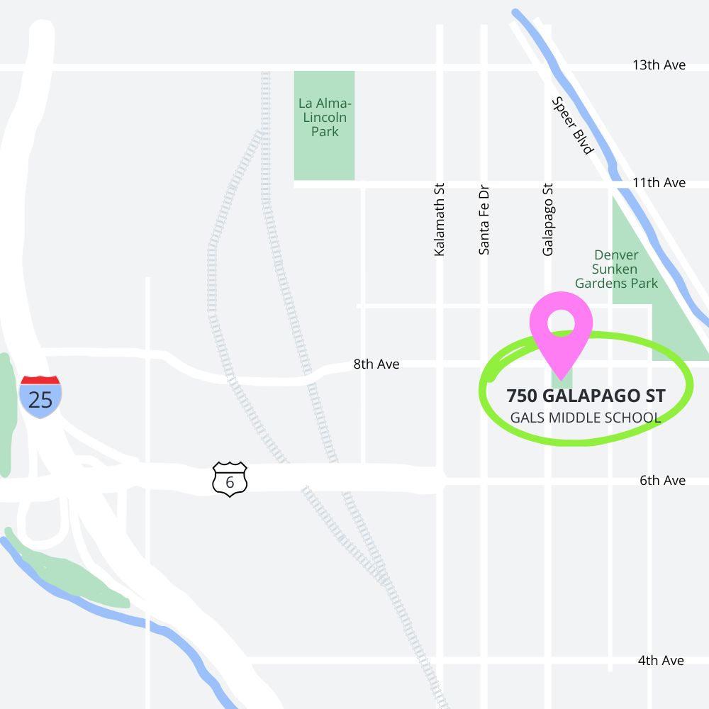 Our field is home to the GALS Middle School Thunder, located in the heart of the Santa Fe Arts District at 750 Galapago St, just minutes from I-25 & Route 6. The soccer pitch is high-quality turf, made for middle schoolers, which is a perfect as-is field for adult 7v7s. We're super excited to partner with the only all-girls public school in Denver and to level-up our field for the late-fall season.